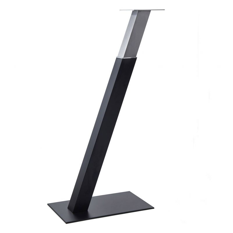 Pied de snack incliné à 70° téléscopique en acier - 80 x 80 - hauteur de 820 à 1100mm - finition noir et inox