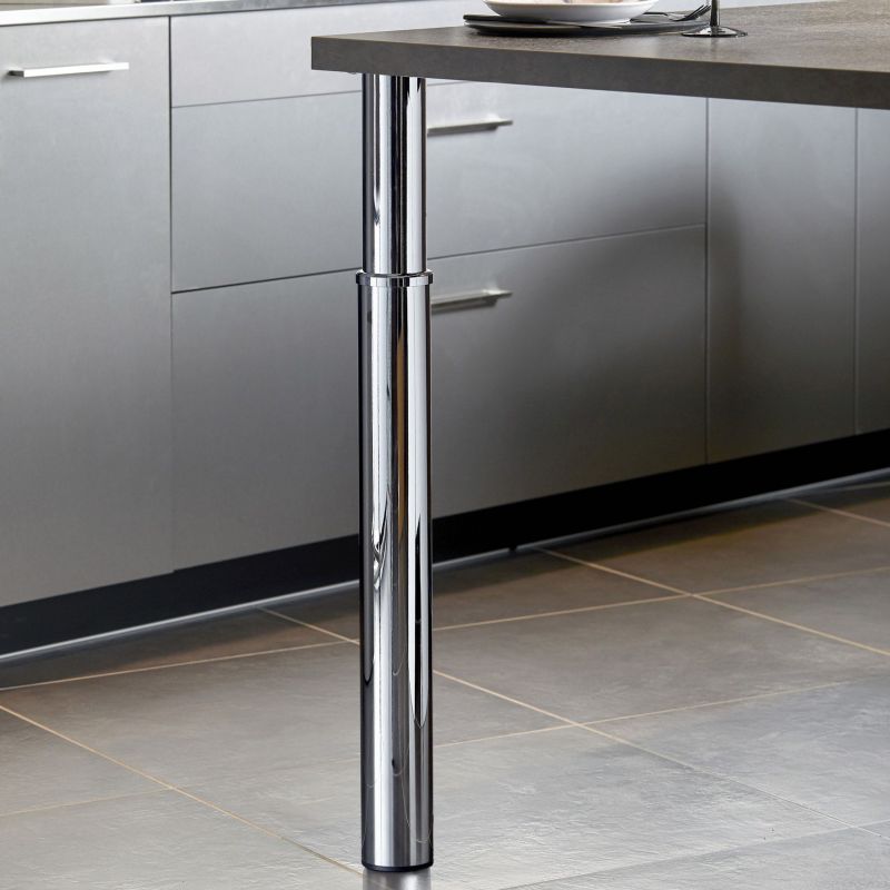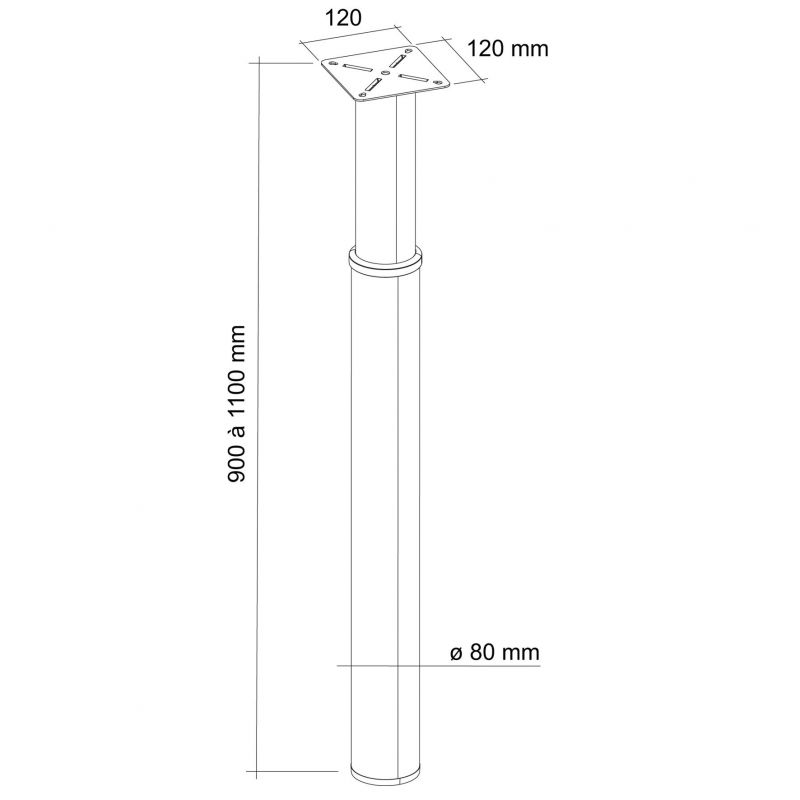 Pied de snack rond téléscopique en acier - diamètre de 80mm - hauteur de 900 à 1100mm - finition chrome