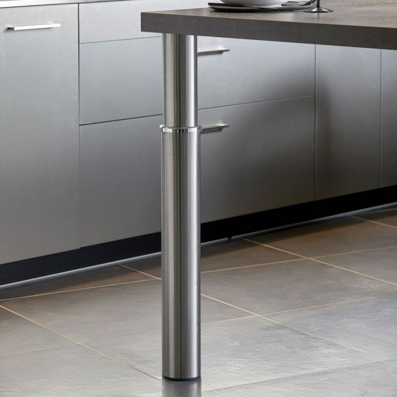 Pied de snack rond télescopique en acier - diamètre de 120mm - hauteur de 680 à 870mm - finition inox brossé