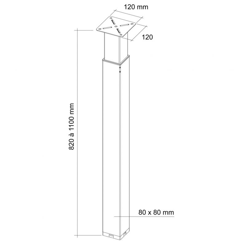 Dimensions : 80 x 80 mm H. 820 à 1100 mm platine 120 x 120 mm