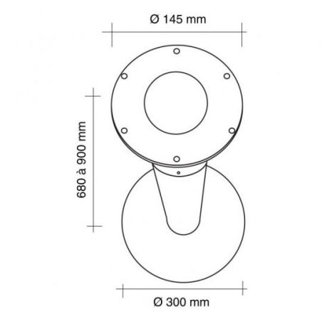 Pied de snack rond téléscopique en acier - diamètre de 80mm - hauteur de 700 à 920mm - finition chrome