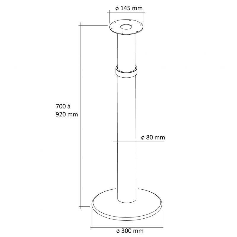 Pied de snack rond télescopique en acier - diamètre de 80mm - hauteur de 700 à 920mm - finition blanc mat