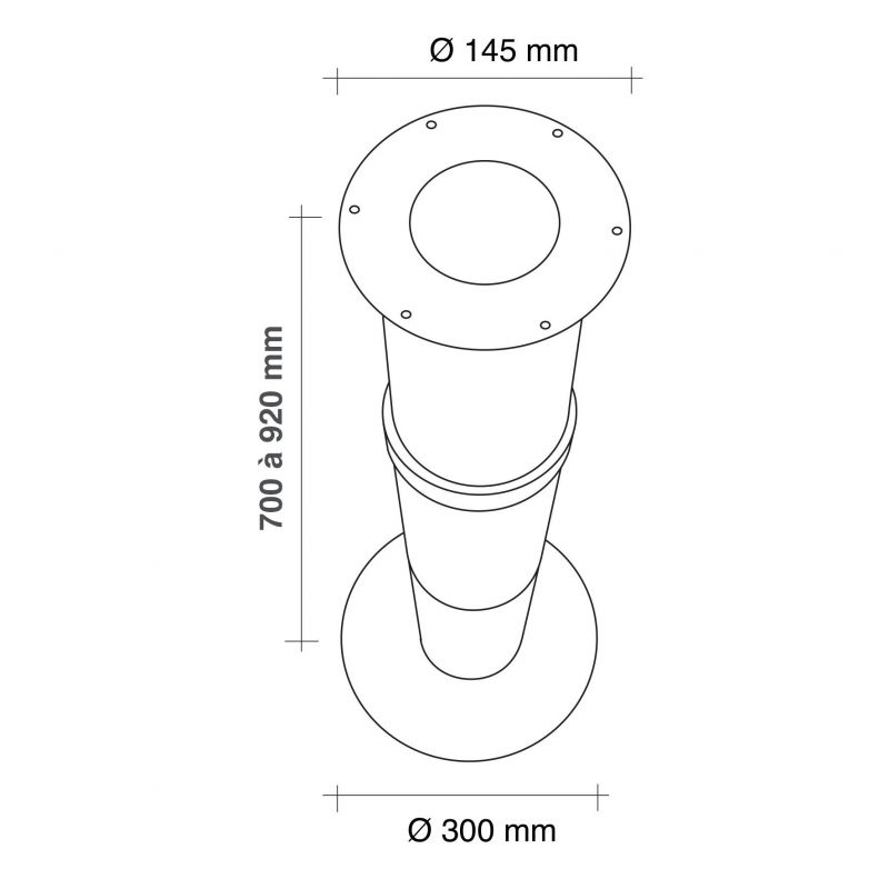 Pied de snack rond téléscopique en acier - diamètre de 120mm - hauteur de 700 à 920 mm - finition noir mat