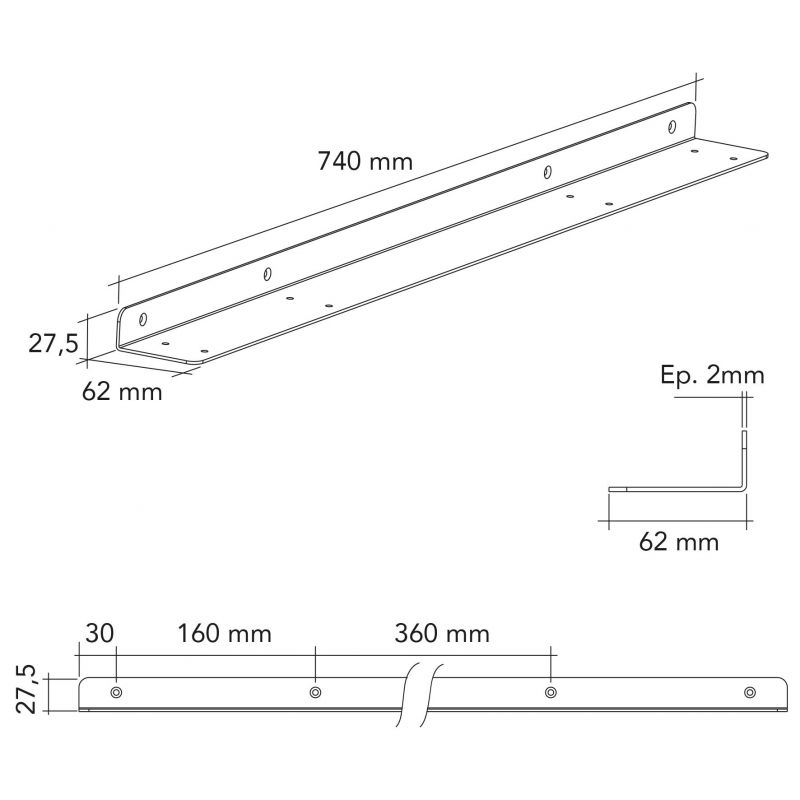 Dimensions : h. 27,5 x l. 62 x L. 740 mm