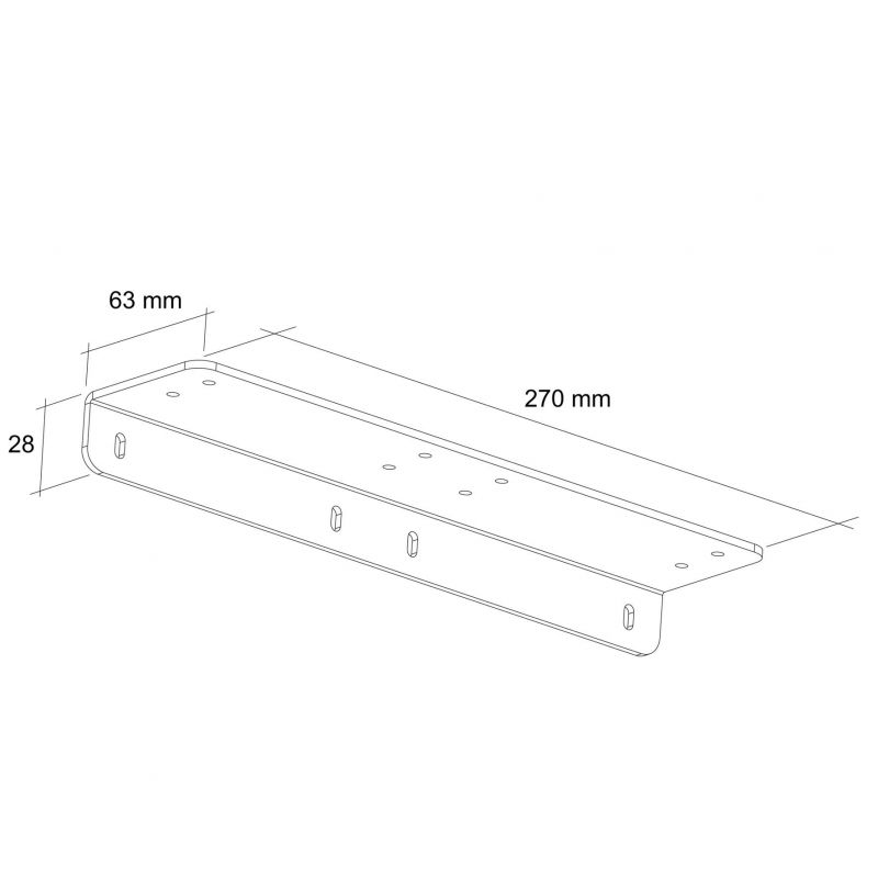 Equerre de fixation de 270mm de long en acier zingué - épaisseur de 3mm - hauteur de 28mm - finition acier zingué