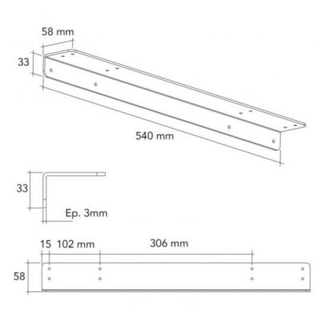 Equerre de fixation de 540mm de long en acier zingué - épaisseur de 3mm - hauteur de 28mm - finition acier zingué