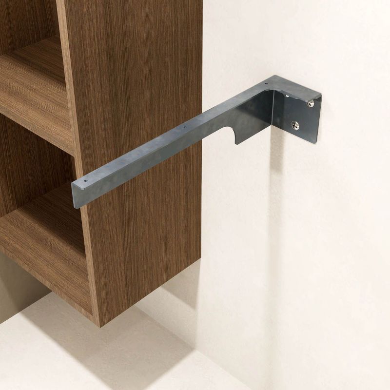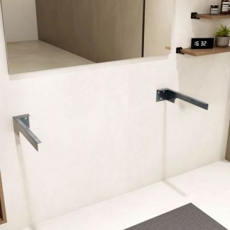 Système d'équerres en acier zingué spécialement étudié pour soutenir le plan de toilette ou meuble