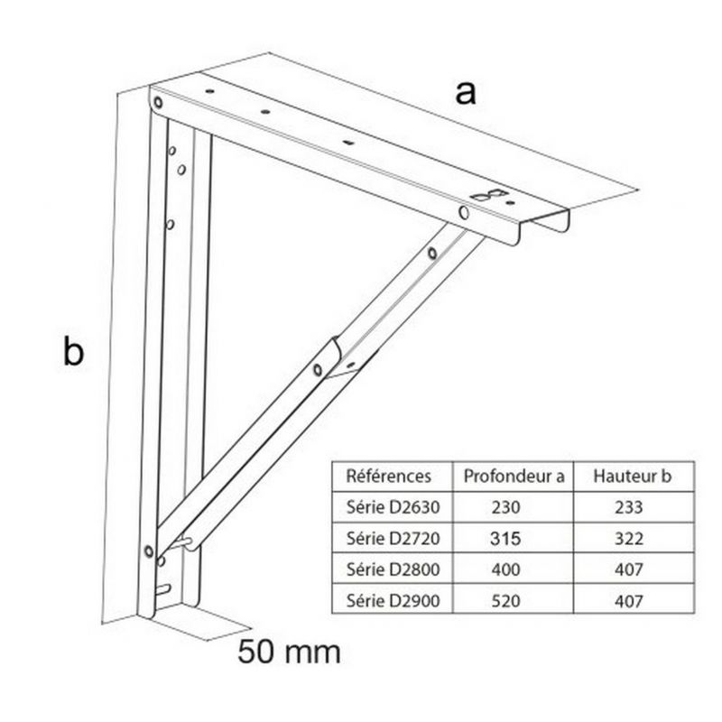 Support de table rabattable pour plateau de 230 à 350mm de profondeur - Finition noir mat