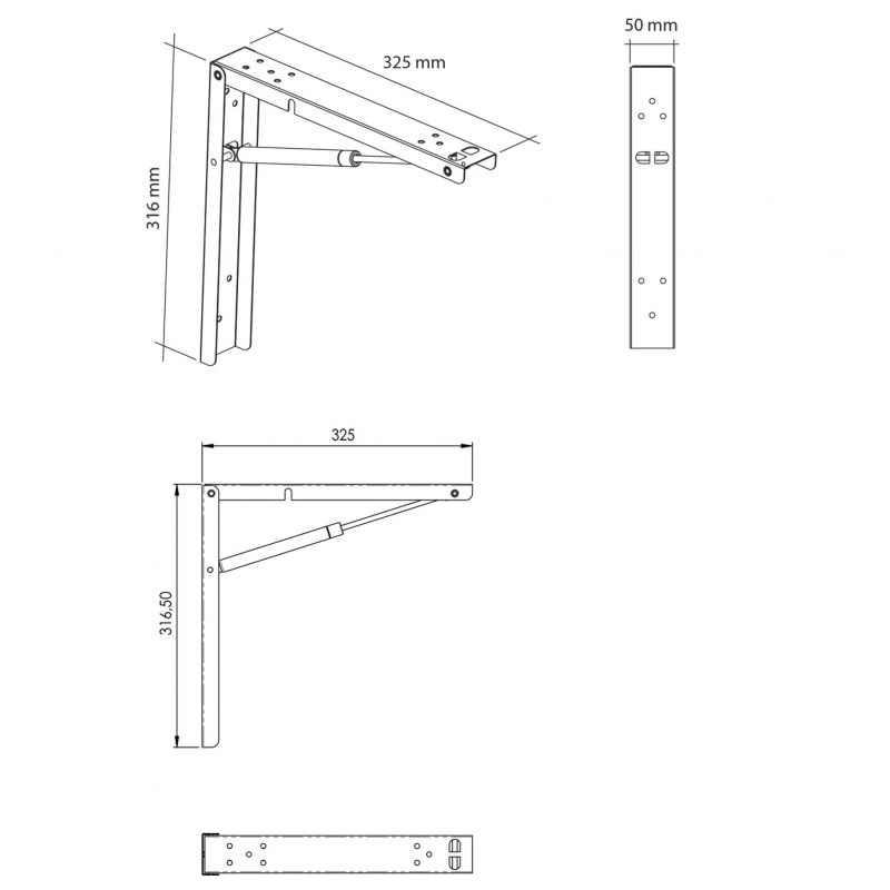 Support de table rabattable avec piston pour plateau de 400mm de profondeur minimum - à utiliser avec 2 supports standards-Finition gris
