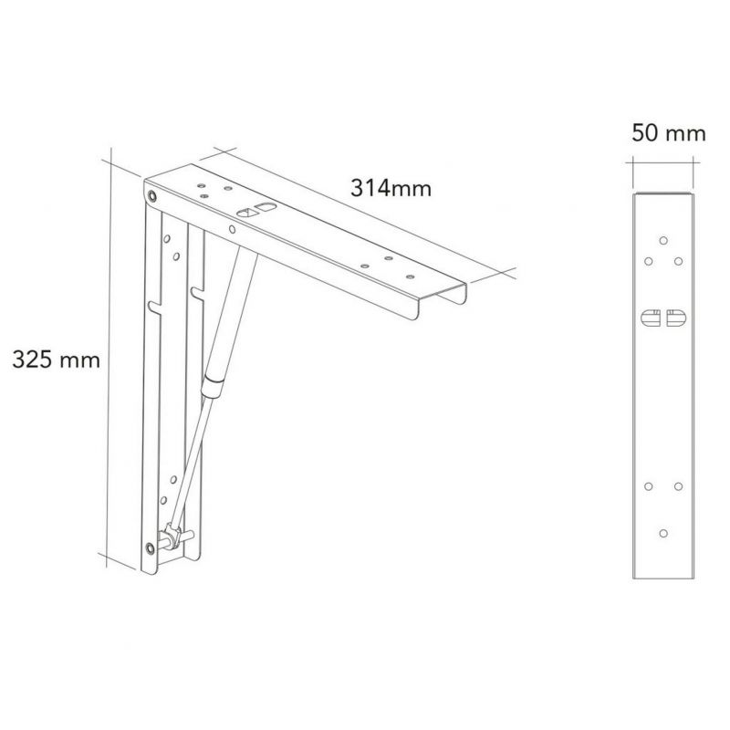 Support de table rabattable avec piston pour plateau de 400mm de profondeur minimum - à utiliser avec 2 supports standards-Finition blanc mat