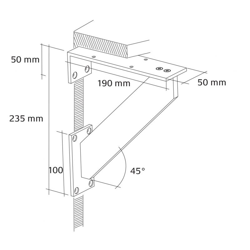 Support de snack mural TECNICO - spécial tablette lourde - finition aluminium