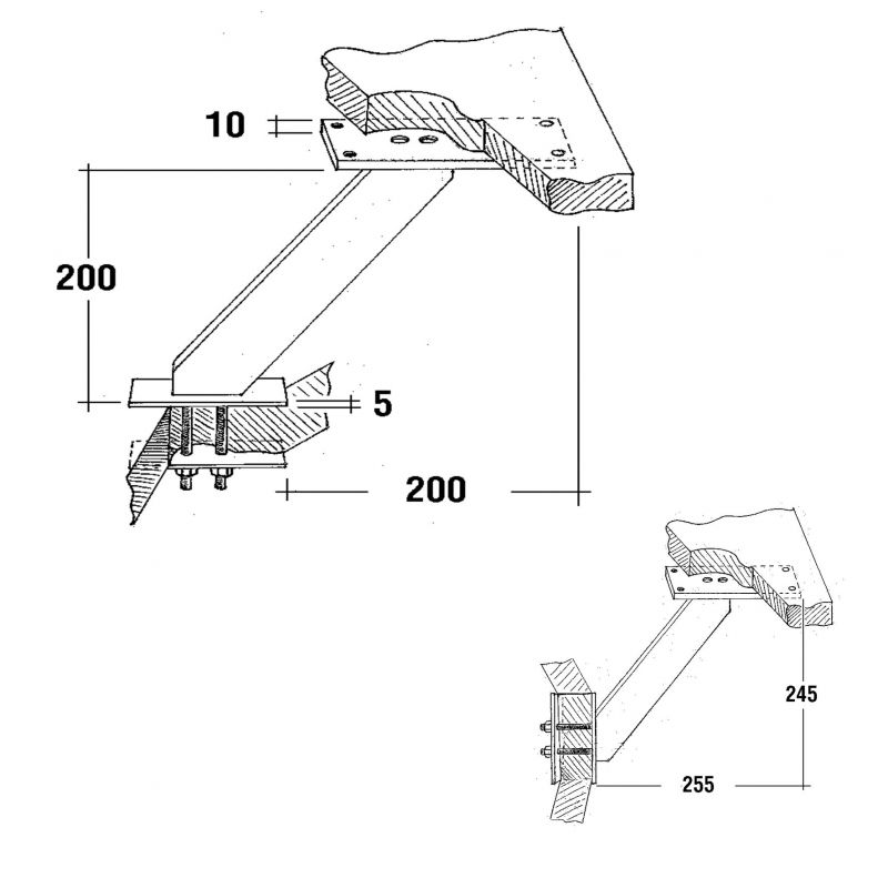 Dimensions 2° : h. 245 x L. 255 x l. 50 mm inclinaison 45°