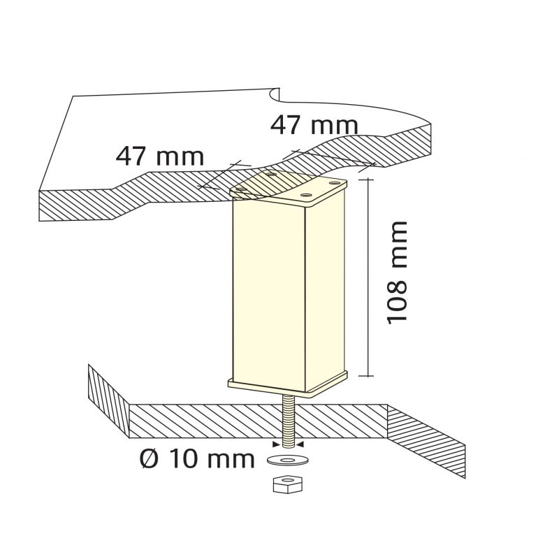 Support de snack QUADRATO droit - H. 108mm - finition inox brossé