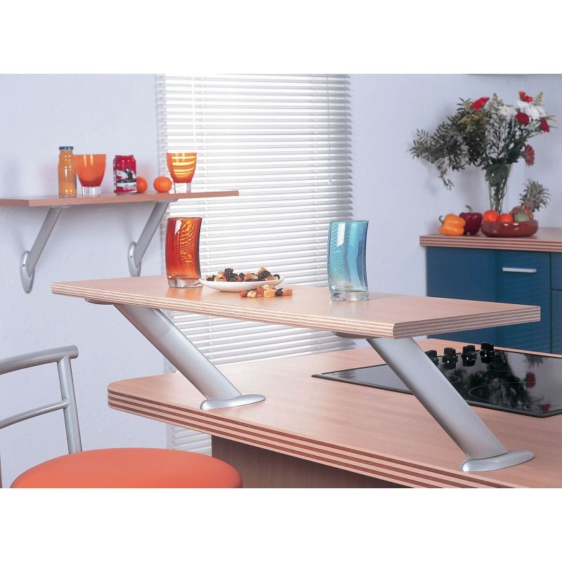 Support de snack incliné VELA - H. 200mm - finition chrome Descriptif : Couleur : Chrome Dimensions : h. 200 x L. 343,53 x l. 50 mm inclinaison 45° Charge maxi : 90 kg Fixation par vis sur le plan de travail Bon à savoir : Profil en aluminium ovale spécialement conçu pour faciliter le nettoyage. Vendu à l'unité. Conseil d'entretien : Ne pas utiliser de produit abrasif.