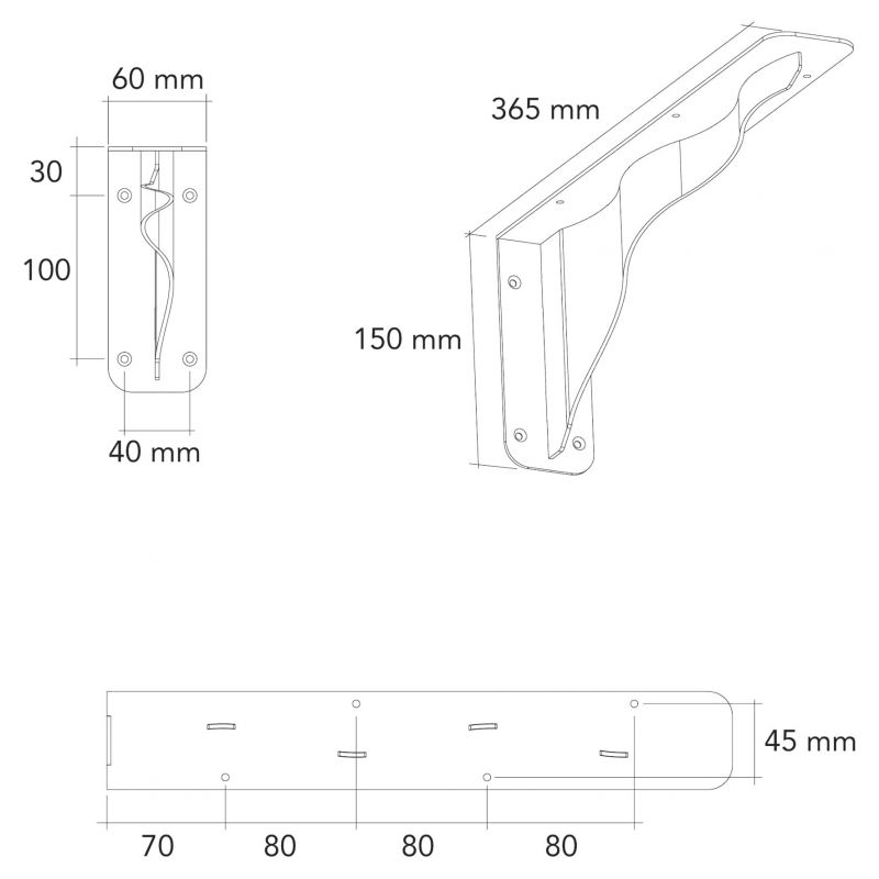 Dimensions : H. 150 x l. 60 x P. 365 mm