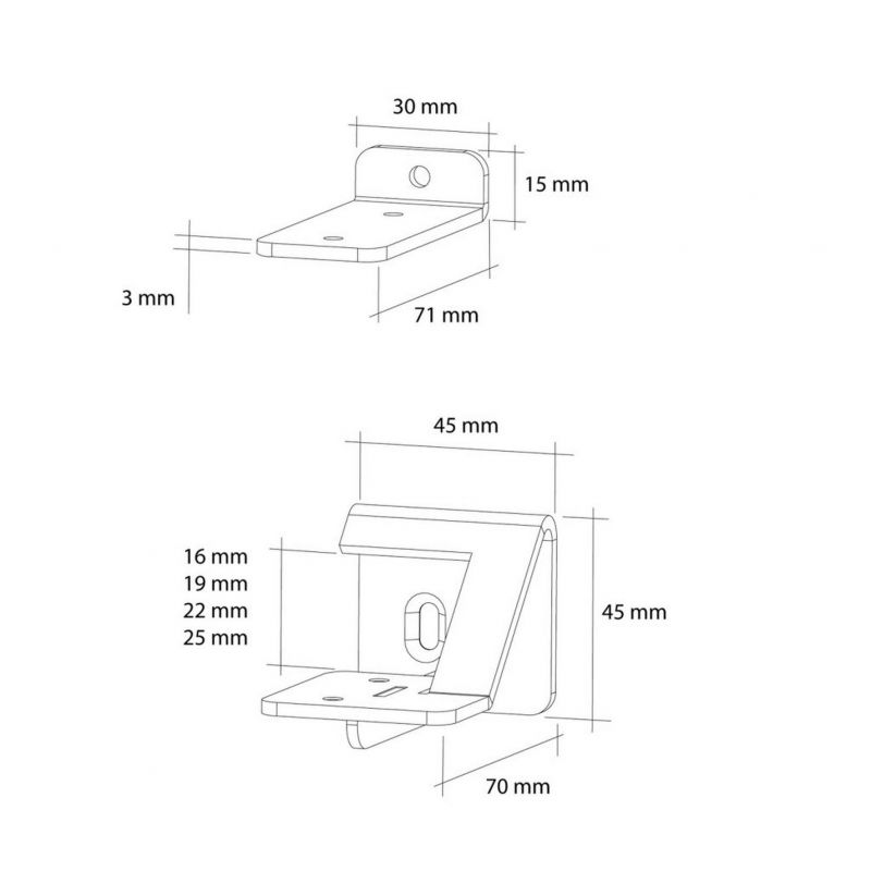 Kit de 2 supports étagère IZO 2 + 1 pièce centrale pour tablette bois d'épaisseur 22mm - Finition noir mat