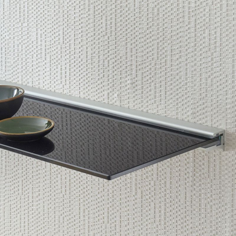 Pack support en aluminium anodisé largeur 600mm + tablette en verre noir de 6mm - finition aluminium anodisé