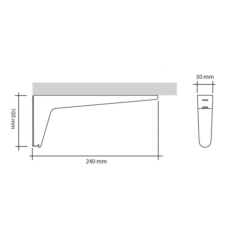 Support de tablette de 30 cm maximum de profondeur - l. 30 x P. 240 x H. 100mm - finition aluminium mat