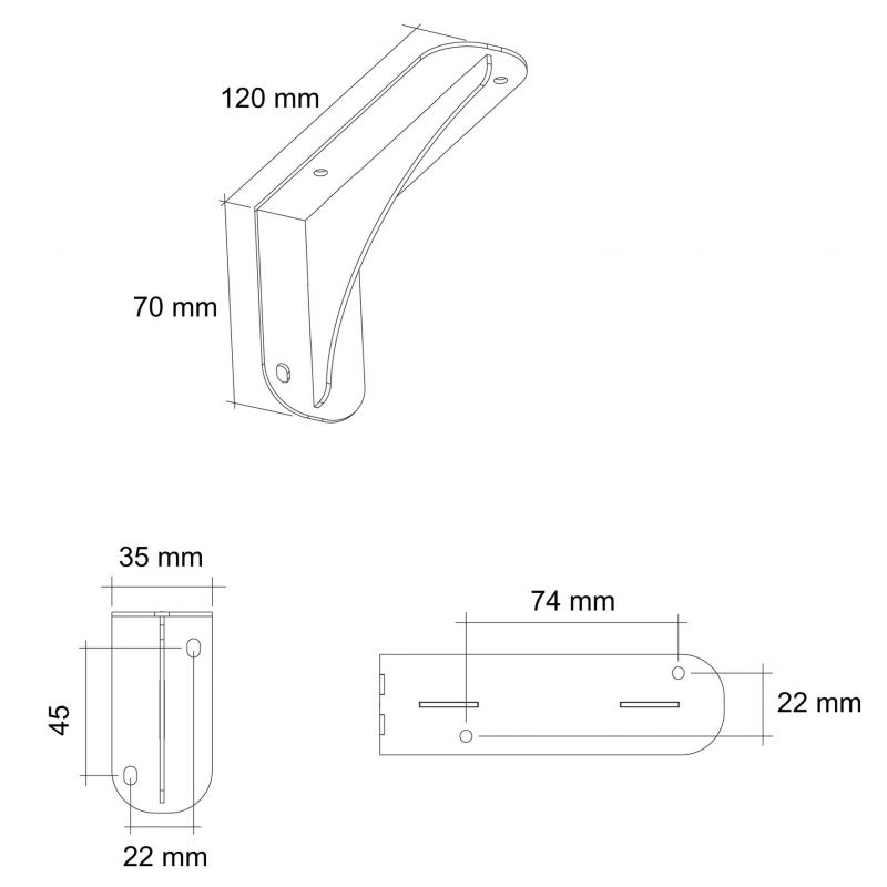 Lot de 2 Supports MINI STRONG pour tablette de 20 cm maximum de profondeur - l. 35 x P. 120 x H. 70mm - finition noir mat