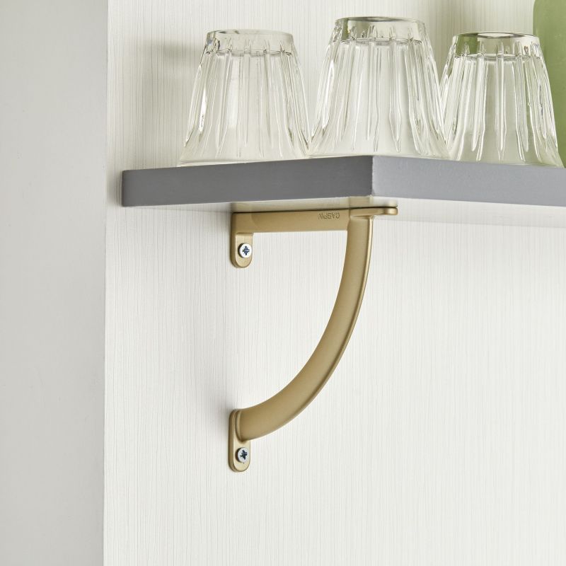 Lot de 2 Supports pour tablette de 20 cm maximum de profondeur - l. 12 x P. 120 x H. 132 mm - finition or mat