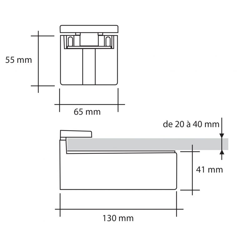 Lot de 2 Support de tablette de 20 à 40mm d'épaisseur et de 30 cm maximum de profondeur - l. 65 x P. 130mm - finition chrome - vendu par 2