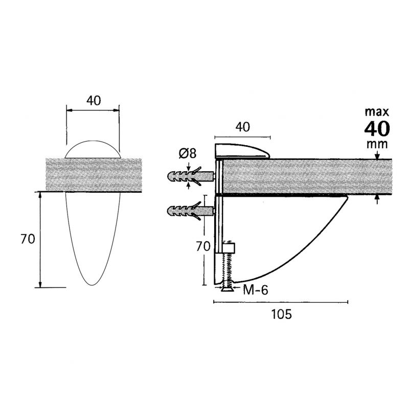 Support de tablette de 6 à 40mm d'épaisseur et de 15 cm maximum de profondeur - l. 40 x P. 105mm - finition aluminium mat