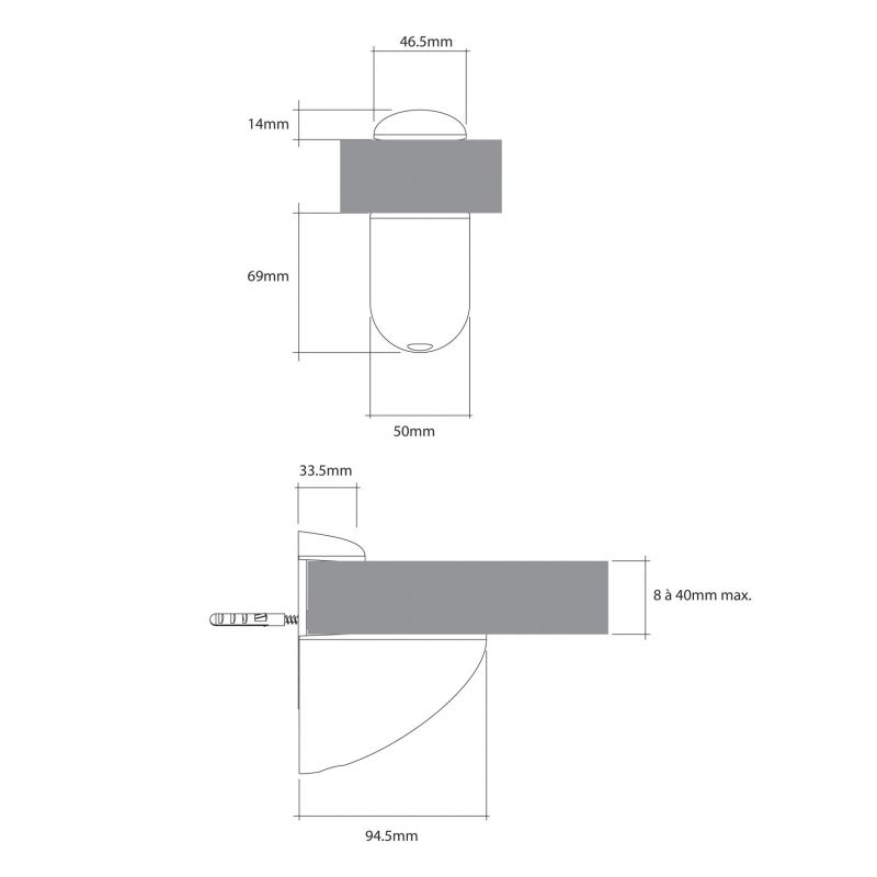 Lot de 2 Support de tablette de 8 à 40mm d'épaisseur- finition Gris alu- vendu par 2