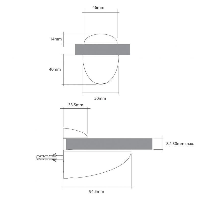 Lot de 2 Support de tablette de 8 à 30mm d'épaisseur- finition Gris alu-vendu par 2