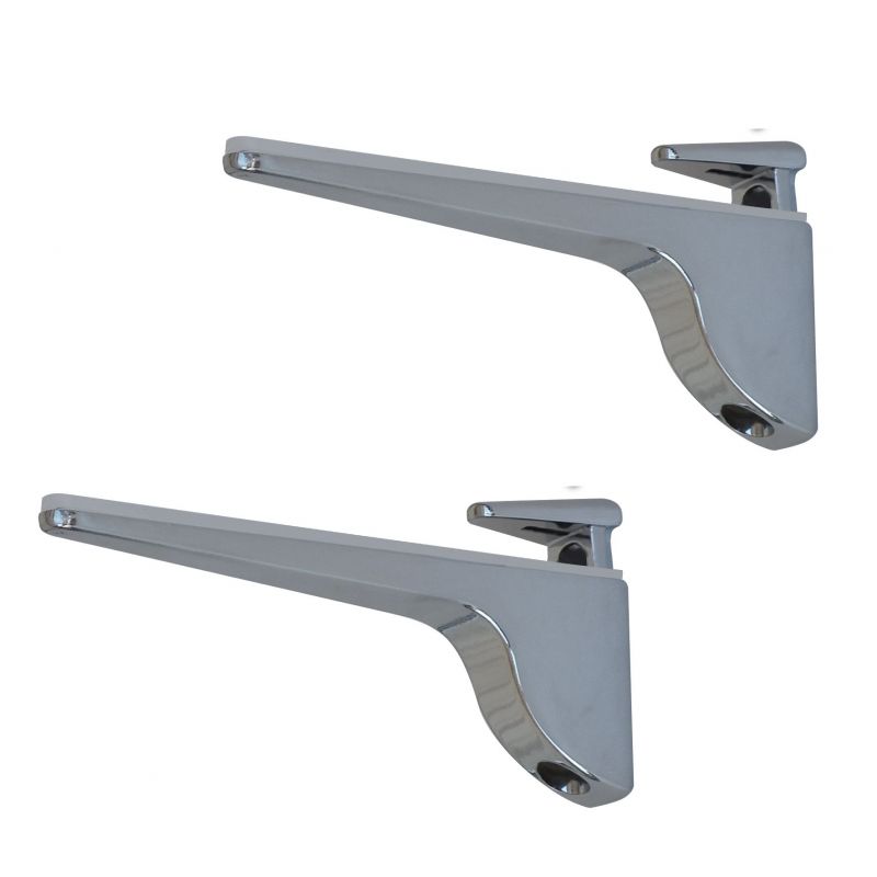 Lot de 2 Support de tablette de 4 à 28mm d'épaisseur et de 30cm maximum de profondeur - l. 22 x P. 130mm - finition chrome - vendu par 2