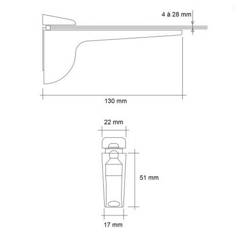 Lot de 2 Support de tablette de 4 à 28mm d'épaisseur et de 30cm maximum de profondeur - l. 22 x P. 130mm - finition brun doré mat - vendu par 2