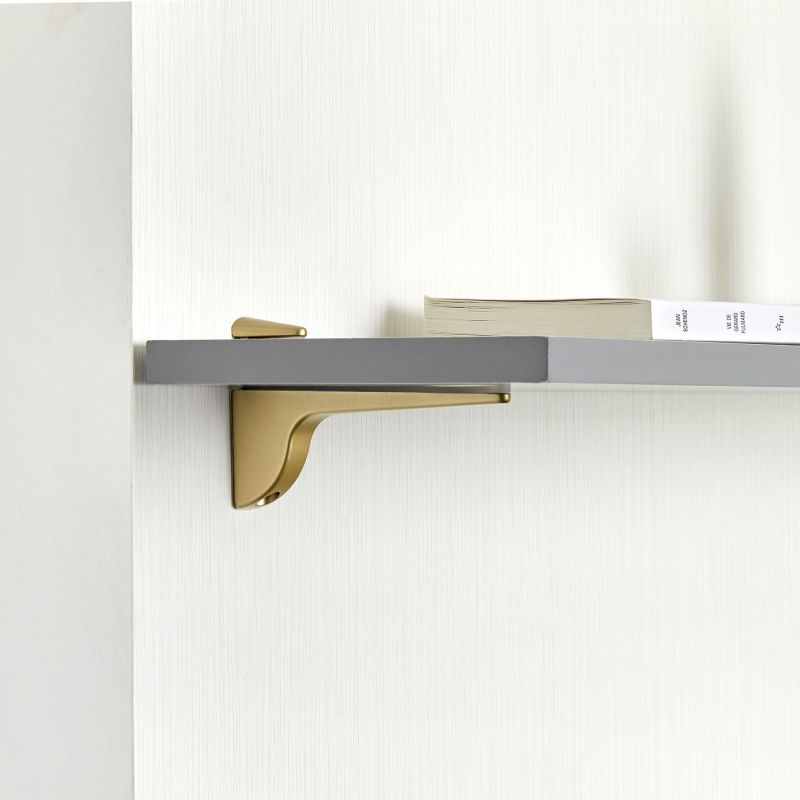 Lot de 2 Supports pour tablette de 4 à 28mm d'épaisseur et 30cm max. de profondeur - l. 22 x P. 130mm - finition Or mat