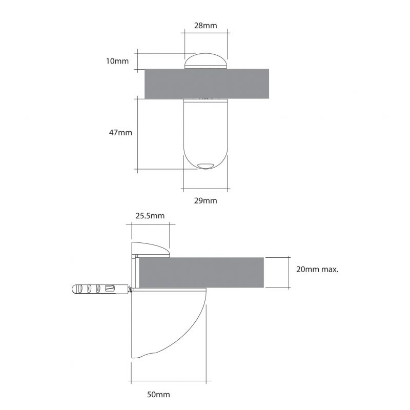 Dimensions : H.77 mm maxi l. 29 mm Profondeur 50 mm