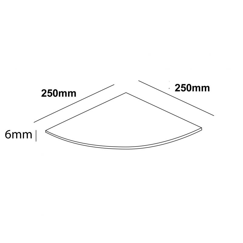 Tablette d'angle en verre mat (dépoli) de 250 x 250 x 6mm