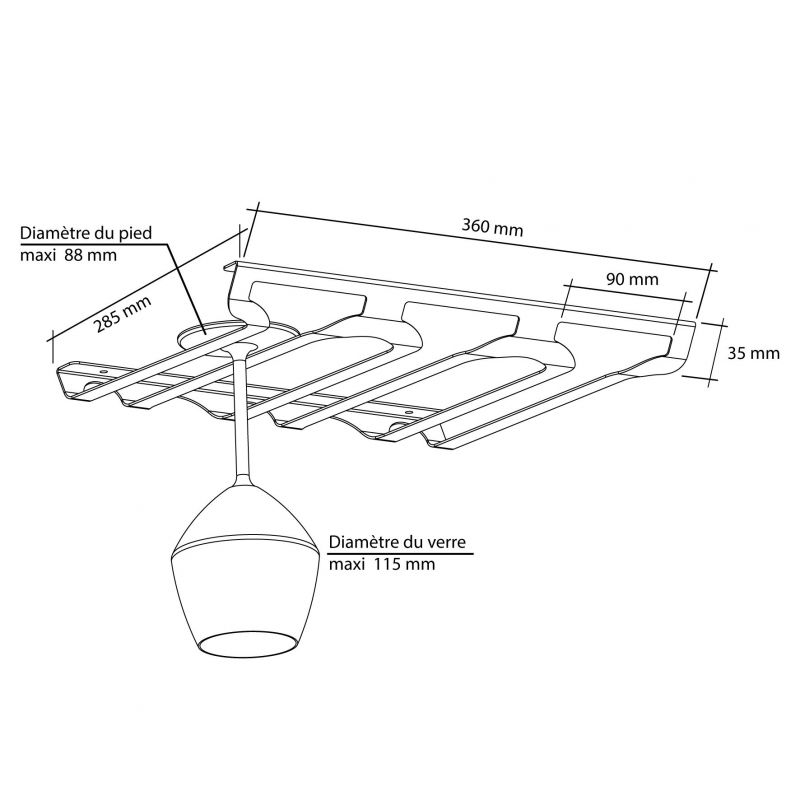 Porte-verre SLIDE- Capacités 6 gros verres-360mm- Finition noir mat