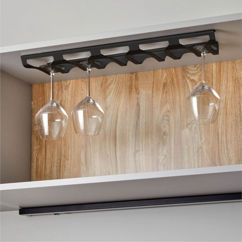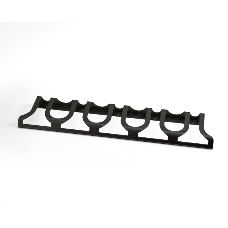 Porte-verre SLIDE - Finition noir mat-Capacité 5 verres-l.600mm Descriptif: Couleur: Noir mat Capacité : 5 verres Dimension: P.126mm, L.600mm Fixation sous meuble haut ou étagères (vis non fournies) Bon à savoir: Profil extra fin Inclinaison pour faciliter la prise Conseil d'entretien: Ne pas utiliser de produits abrasifs