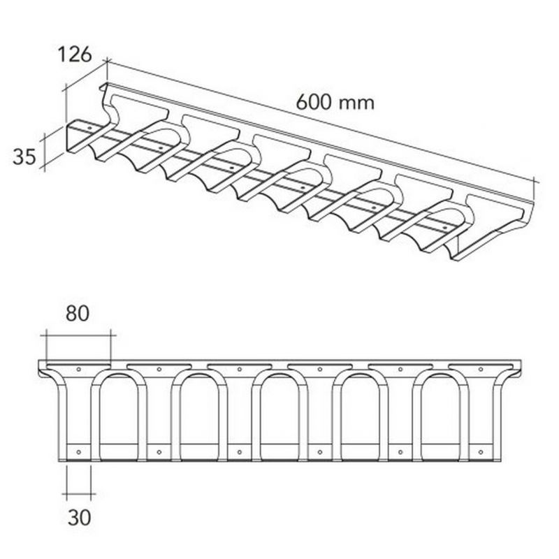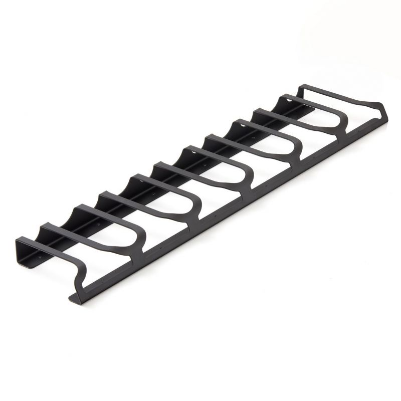Porte-verre noir mat-Capacité 6 verres-l.600mm-H.35mm Descriptif: Couleur: Noir mat Capacité : 6 verres Dimension: P.130mm l.500mm H.35mm Fixation sous une étagère de largeur 600mm Bon à savoir: Vis non fournies Conseil d'entretien: Ne pas utiliser de produits abrasifs
