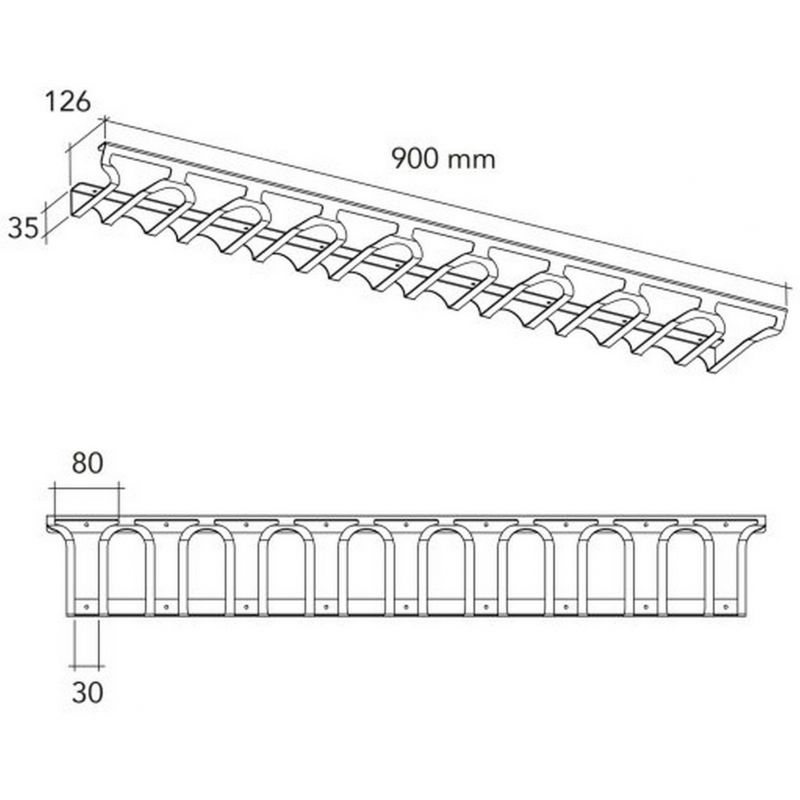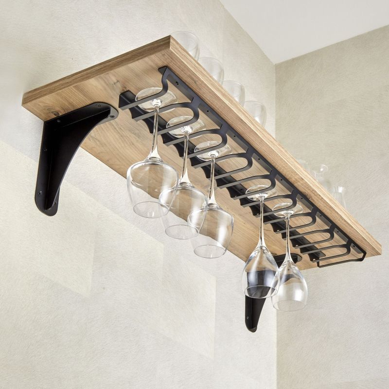 Porte-verre noir mat. Capacité 9 pièces-l.900mm-H.35mm-P.130mm Descriptif: Couleur: Noir mat Capacité : 9 verres Dimension: P.130mm l.800mm H.35mm Fixation sous une étagère de largeur 900mm Bon à savoir: Vis non fournies Conseil d'entretien: Ne pas utiliser de produits abrasifs