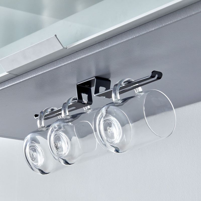 Porte-mug WING-Finition noir mat-Capacité 4 mugs Descriptif : Couleur : Noir mat Dimensions : 327,6x30x32,5 mm Fixation par 2 vis (non fournies). Bon à savoir : Capacité de 4 mugs. A installer sous un meuble haut ou dans un meuble haut Conseil d'entretien : Ne pas utiliser de produit abrasif.