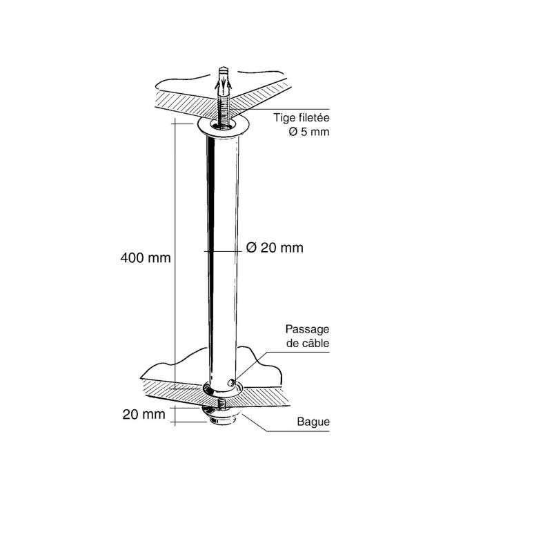 Support baldaquin spécialement étudié pour permettre le passage de câble D. 10 mm maxi.