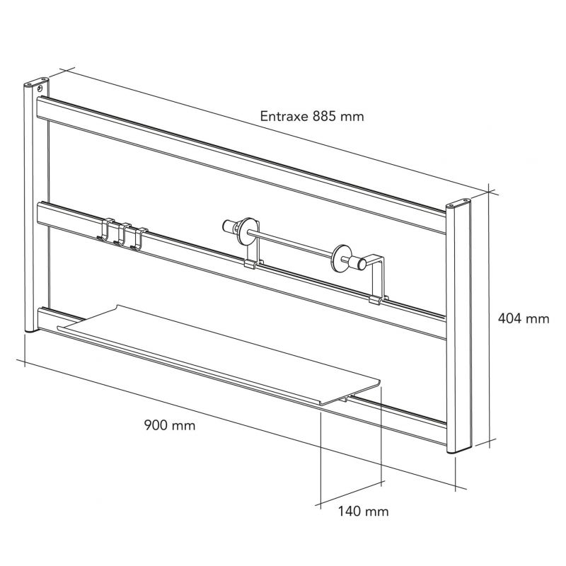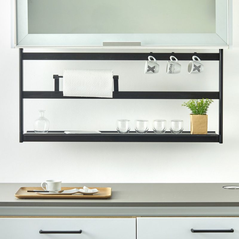 Kit étagère de crédence en aluminium pour meuble haut de 900mm avec étagère, porte-rouleau et 3 crochets - finition noir mat