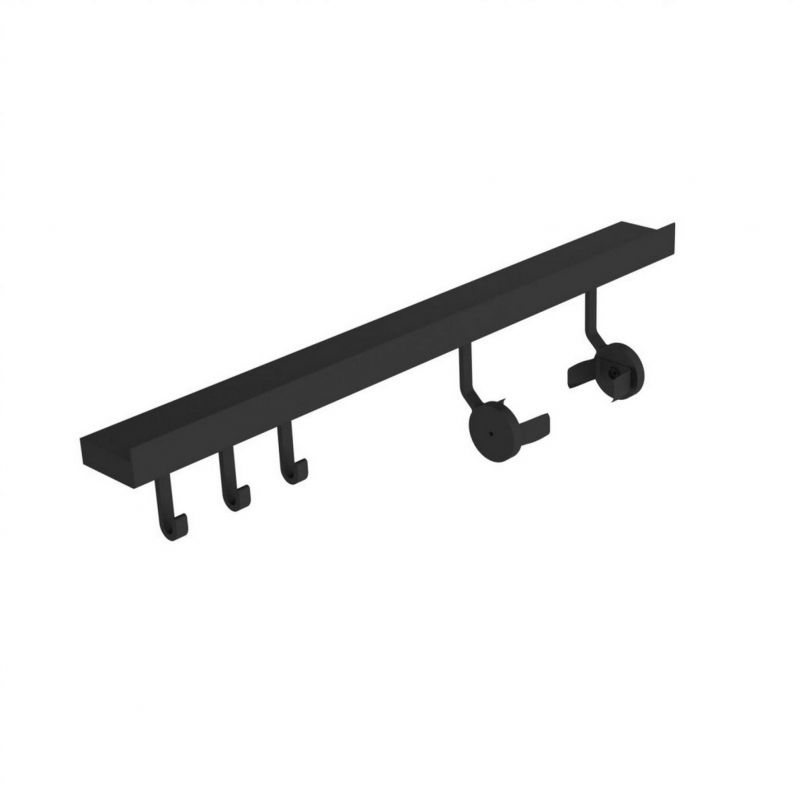Kit barre de crédence avec 1 porte-rouleau et 3 crochets - Longueur 600mm - finition noir mat
