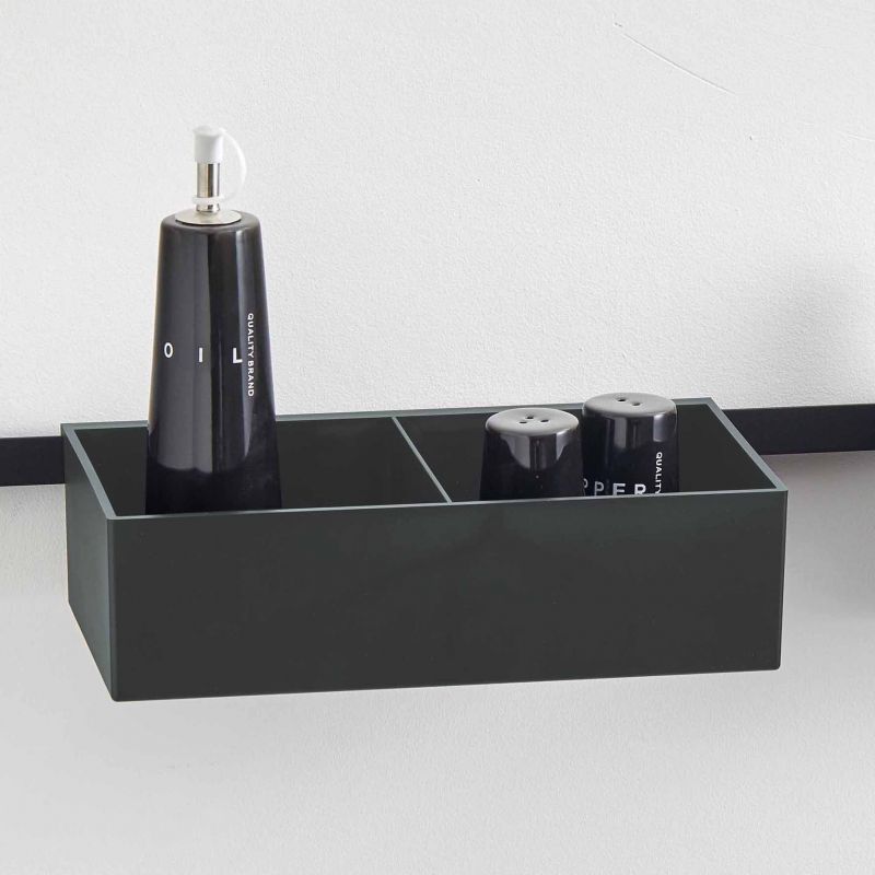 Bac porte-épices en ABS laqué pour barre de crédence HANDY - 26 x 8,2 x 7,5cm - finition gris