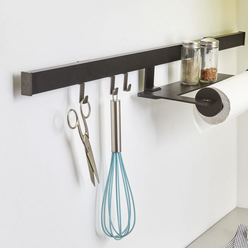 Kit main courante composé d'1 barre redécoupable et de 3 crochets - L. 900 x l. 16 x H. 35mm - finition noir mat