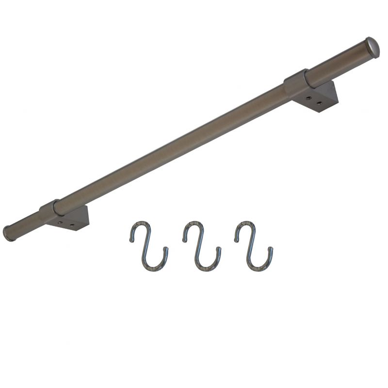 Kit barre de crédence ronde diamètre 16mm en acier avec 3 crochets, supports design - longueur 450mm, Inox brossé