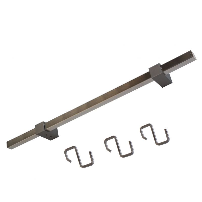 Kit barre de crédence carrée avec 3 crochets - L. 45cm - finition inox brossé