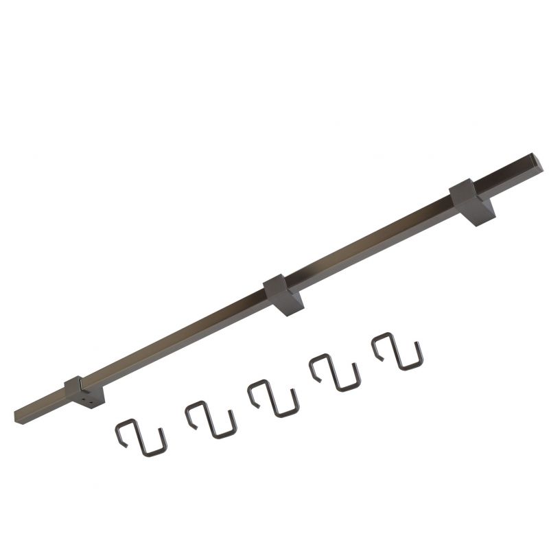 Kit barre de crédence carrée avec 5 crochets - L. 120cm - finition chrome