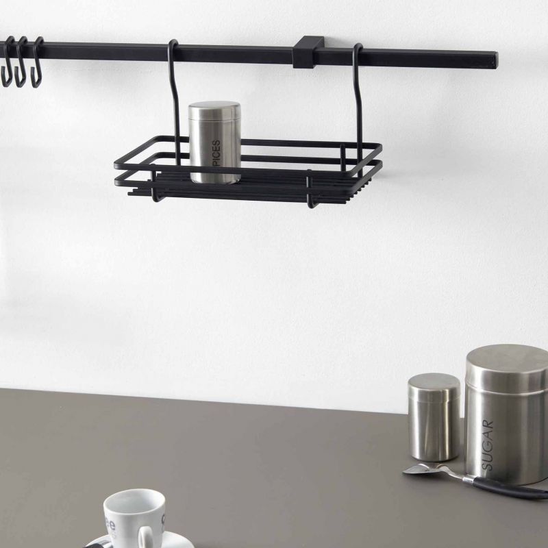 Balconnet carré simple pour barre de crédences carrée - L. 260 x P. 190 x H. 155mm - finition noir