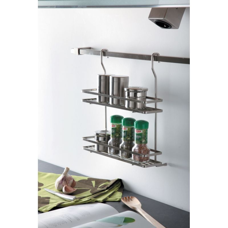 Balconnet carré porte-épices pour barre de crédences carrée - L. 300 x P. 115 x H. 325mm - finition chrome