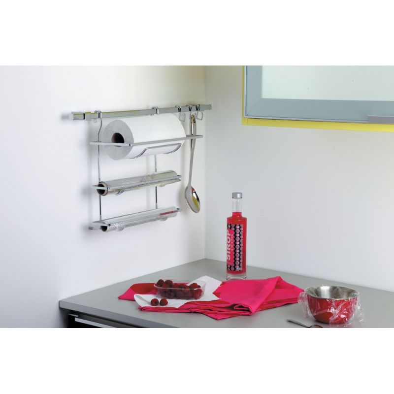 Porte-rouleaux triple pour barre de crédences carrée - L. 320 x P. 195 x H. 335mm - finition chrome