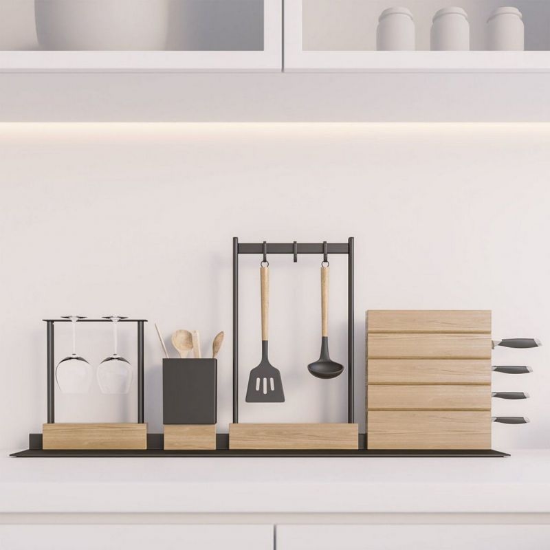 Kit organisateur d'ilot composé de 5 accessoires + 1 base - A poser sur le plan de travail - Longueur 900mm
